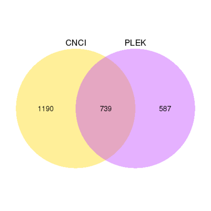 Venn diagrams of results from PLEK and CNCI